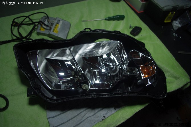 我第一次改装是Q5的小糸透镜,近光漂亮,远光不行,第二次换成进口博世,远近光还可以,但远光碗不带透镜换了氙气后太散,不爽,再加上第二家改灯细节处理不好(还是重庆很出名的一家,我就不提名字了,本地车友可以问我),这次应该是终极改装了,开始上图,图片不太大,不然上传太慢。
