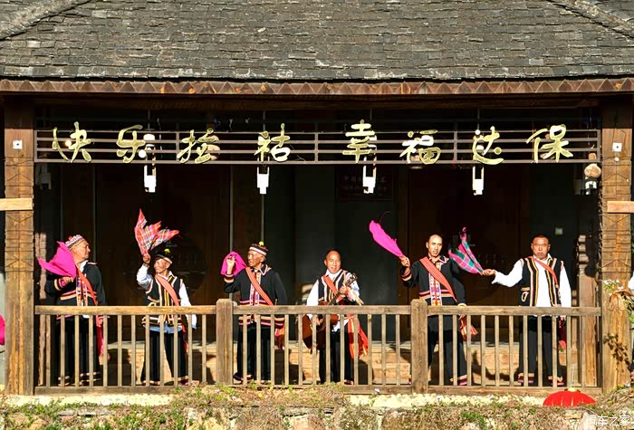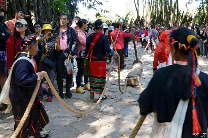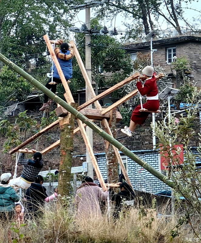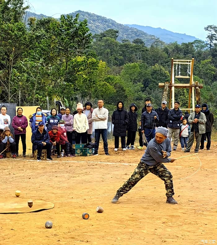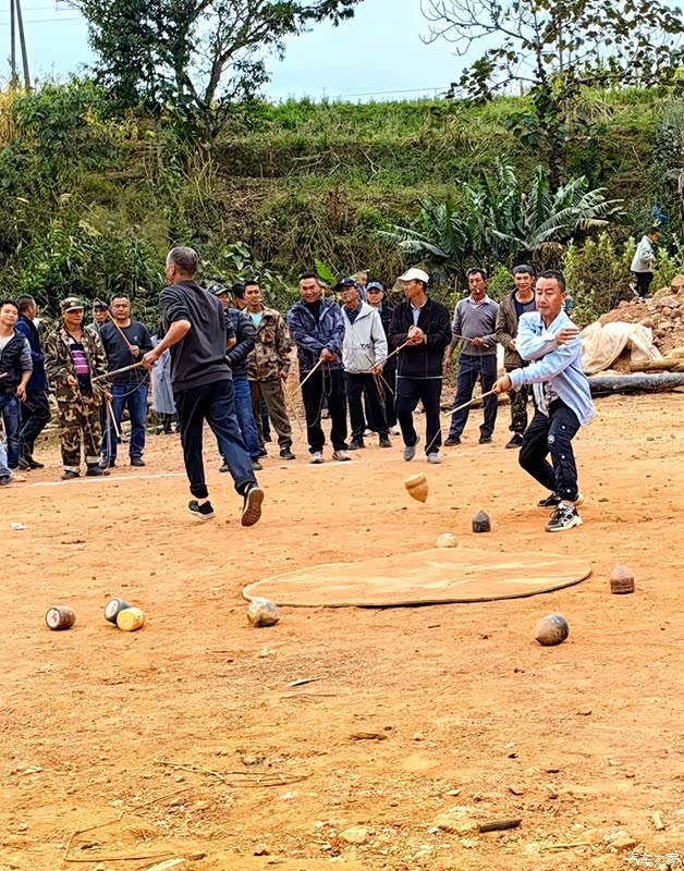 又路过一个寨子,村民们用传统有趣的“打陀螺”、“转秋”方式,欢度新春。