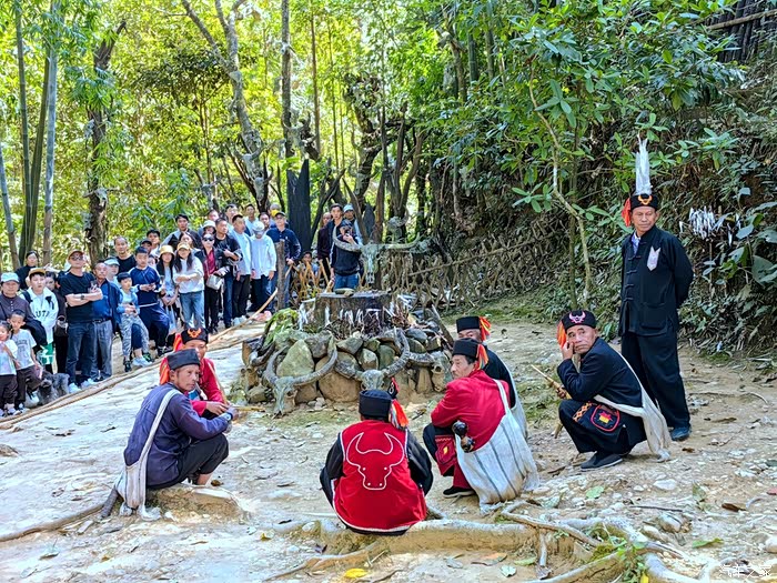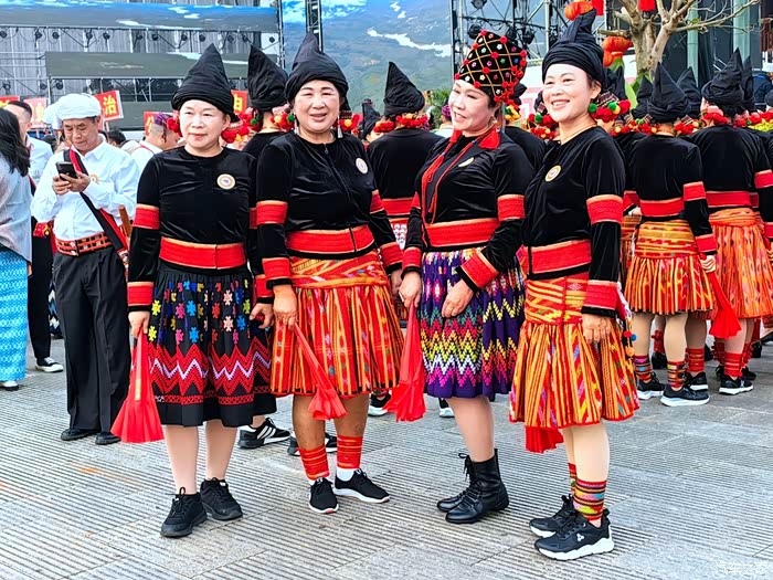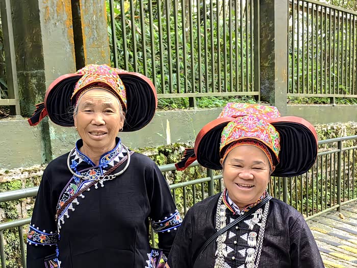 国庆期间,来参观老山主峰的各族群众络绎不绝,这两位彝族大妈相约而来,穿这种服饰的彝族我还是第一次见。