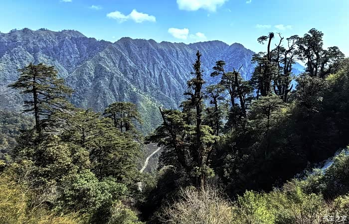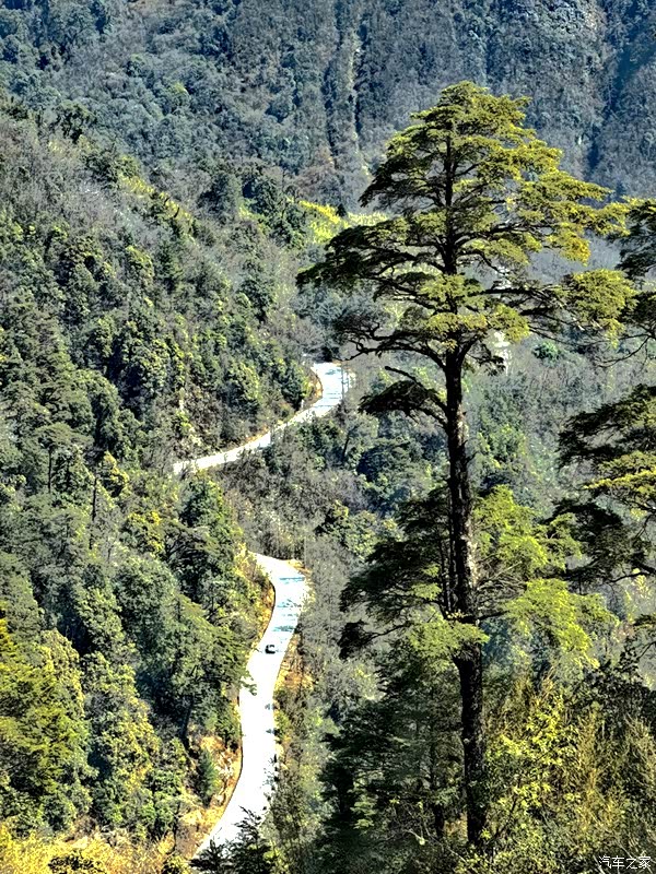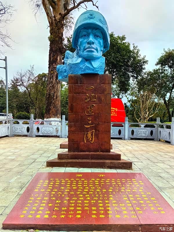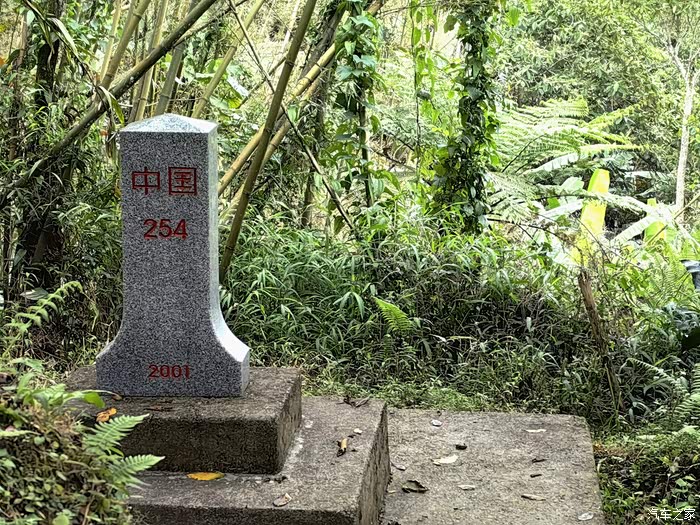 我们来江城的目的,是要去离县城约60公里的十层大山山顶上的那块“一脚踏三国”界碑。沿162县道往边境走,一路下坡路很烂,但山上森林植被很好。