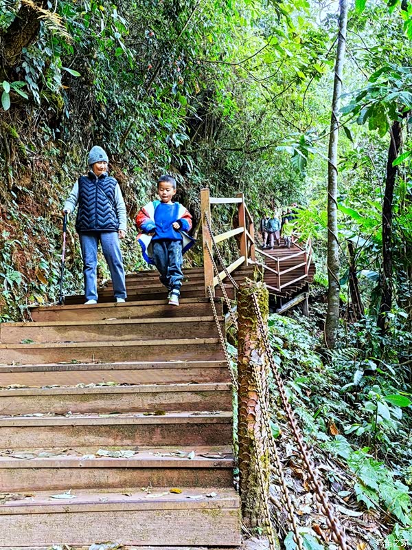 栈道有2公里多,2700多级台阶,蜿蜒曲折忽上忽下,越到上面越陡,最后几级每级有50、60公分高。