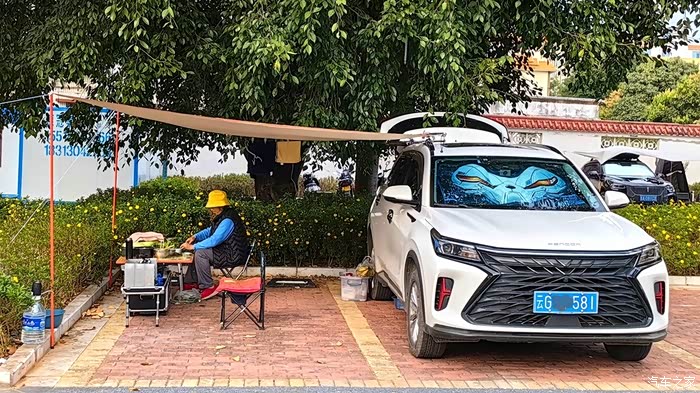 不知何时,一辆电动小三轮停在我们车旁,主人是个看上去略显潦倒的中年人,车虽小但装备齐全,还带了条小狗,跟我说计划要走遍全国。
