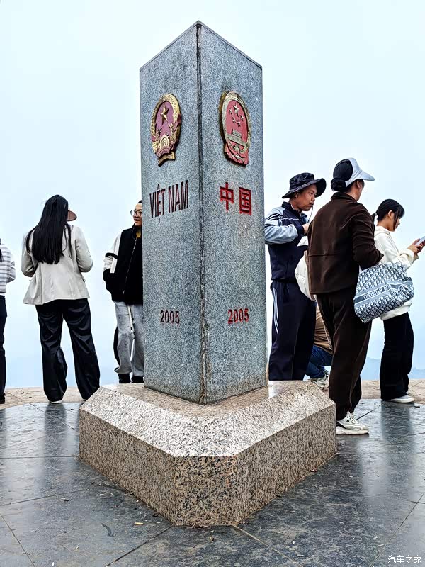 这就是威严伫立在海拔1864米十层大山之巅的0号界碑,花岗岩三棱形,每个面代表一个国家,各面都有文字和国徽,所面对着的方向就是自己国家的国土。