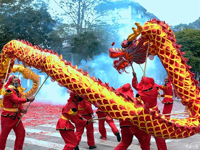 大年初一,县城里锣鼓喧天鞭炮震耳,当地的庆新春巡游活动逐街进行,耍狮舞龙,劲歌烈舞,热热闹闹阵仗气势绝不输于大城市。最让我们感慨的是一辆小货车拉着满满一车鞭炮,沿街放,可劲放,边疆人民不差钱。