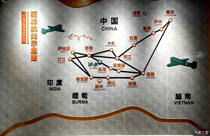 驼峰航线1942年5月开通,1945年结束,航线长800公里,西起印度、东至我国西南各城市,是抗战时期中缅公路中断后,运送抗战人员和物资的唯一通道。