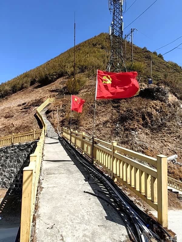 从3号界碑往前3公里到国门村,接受检查登记,然后继续驾车攀爬十层大山,沿途一直上坡,路窄弯多,绕山绕梁来到第八层停车平台处,下车开始徒步最后两层坡度陡峭的栈道,铁丝网随时雄踞路旁非常震撼,自己这是走在国境线上啊!