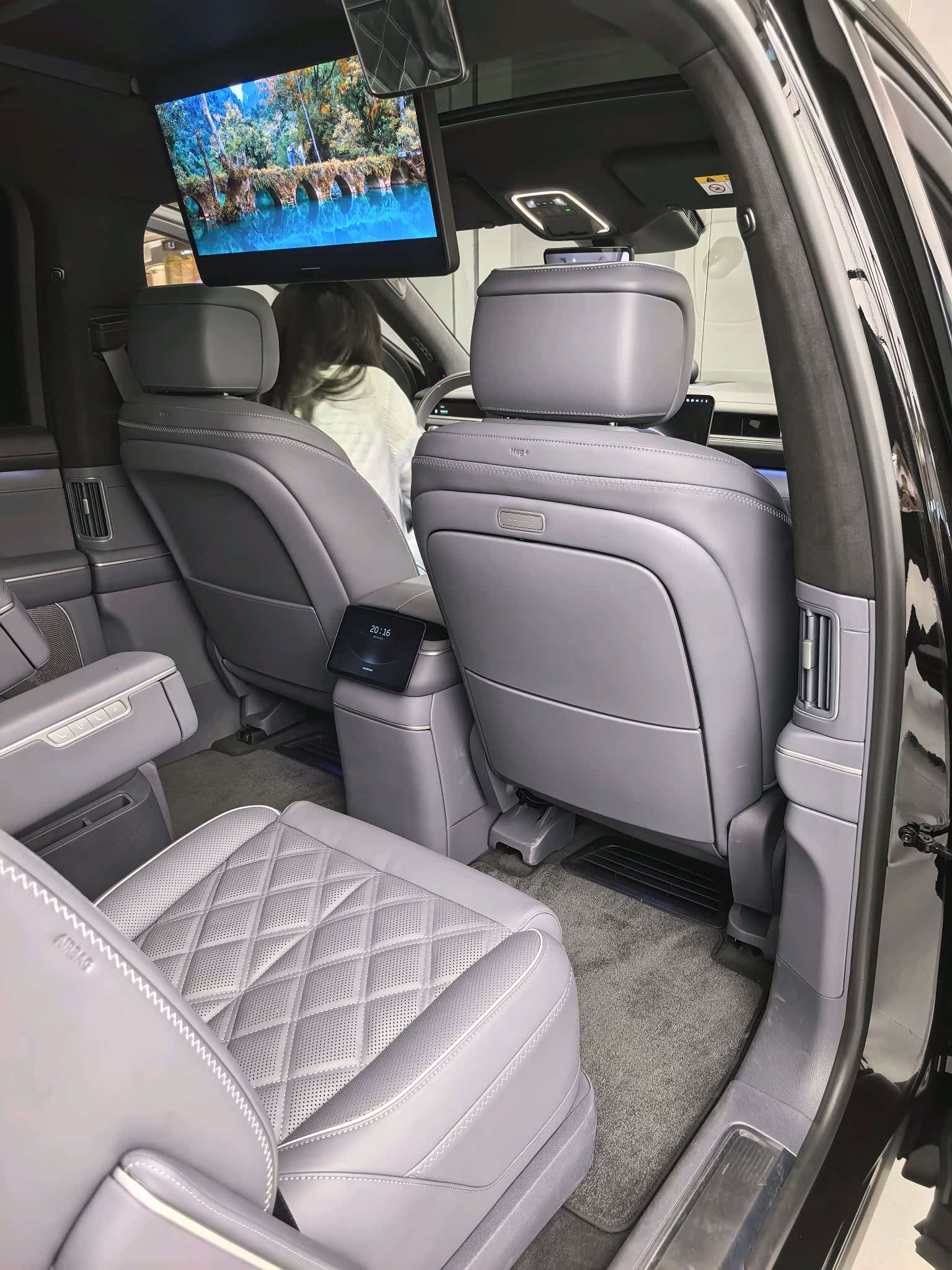 我觉得空间是新ES8最大的亮点。第二排是两把类似独立的航空座椅,销售说支持22向电动调节和热石按摩。按摩效果很强,正儿八经不算鸡肋了,描述一下的话就是有服务区15块钱15分钟那种全身按摩椅的7成功力。