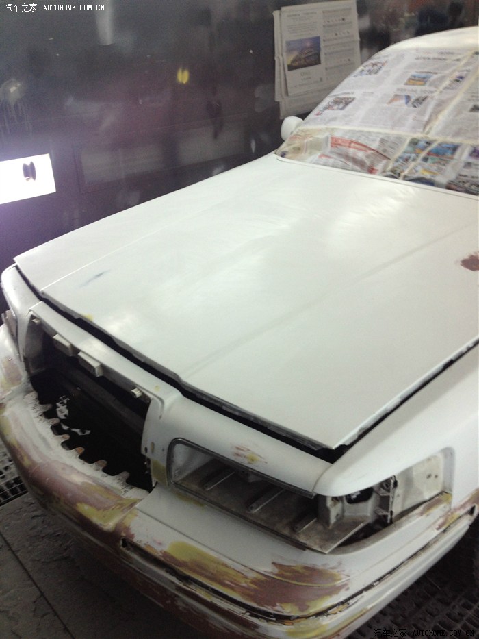 在众多师傅们的劳动下,经过3天的打磨补灰,车子终于到了进喷漆间这一步!!激动!!!(2014.1.13)