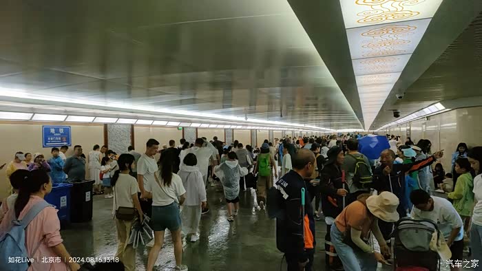 地下通道人挺多,大部分是没带伞进来避雨和休息的。