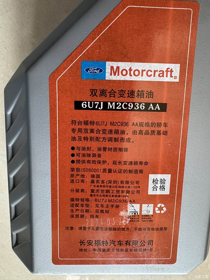 这是老款包装的潘东兴代工的变速箱油,原厂说明书建议6W公里更换,后期厂家建议4W公里更换,目前最新的油是嘉实多代工,瓶身也已经改变,变速箱油需要更换6.5升左右,购买7瓶油及外置滤芯