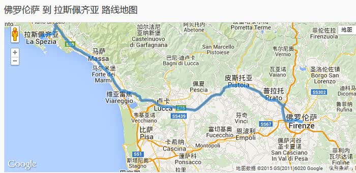这就是本次自驾的行程,佛罗伦萨出发到拉斯佩齐亚(拉斯佩齐亚是去往五渔村的必经小城,还车就在这里),中途小绕一下去比萨看看斜塔,全程大约180公里。