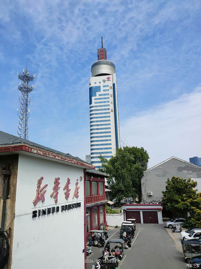 站在太白楼上可以,看到济宁的地标性建筑通讯大厦。