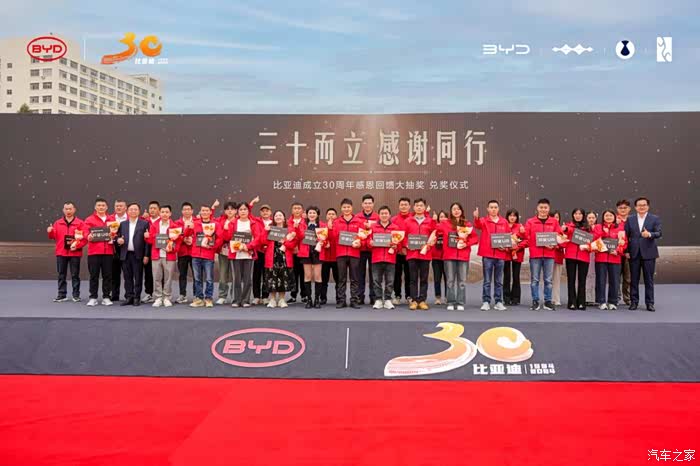 除了感恩车主,比亚迪成立30周年感恩回馈大抽奖活动,也为比亚迪近百万员工准备了30台新车使用权的陪伴之礼。据了解,此次中奖的比亚迪员工分别来自 15 个事业部、21 个地区,涵盖一线基层员工与资深研发工程师,新老员工皆有,他们是比亚迪发展的中坚力量!王传福在现场向每一位中奖员工致以诚挚祝贺。