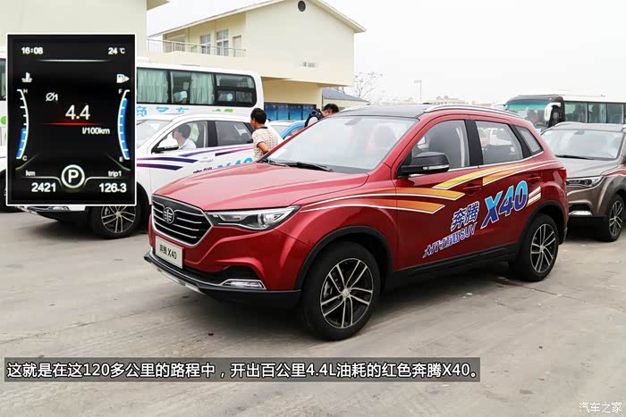 在试驾的环节中,我们设置了一段约120公里的高速路段用于比拼奔腾X40的最低油耗。为了得到更为优异的成绩,管他膀大腰圆的、还是习惯飙车的,大家都使出了黛玉般的温柔脚法来降低油耗。也许最终得出的油耗看起来有点过于理想化,但作为一款1.6L的SUV车型,能开出4.4L的油耗,你愿意相信吗?反正楼主我确实只开出了百公里5.0L的平均油耗。不急,后面有图有真相,慢慢分享。