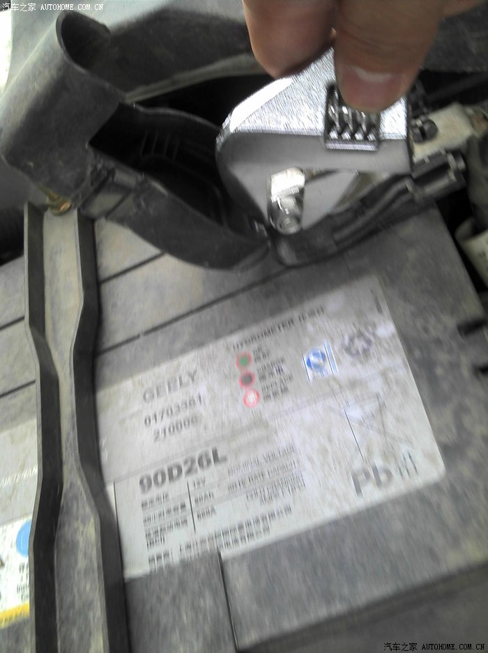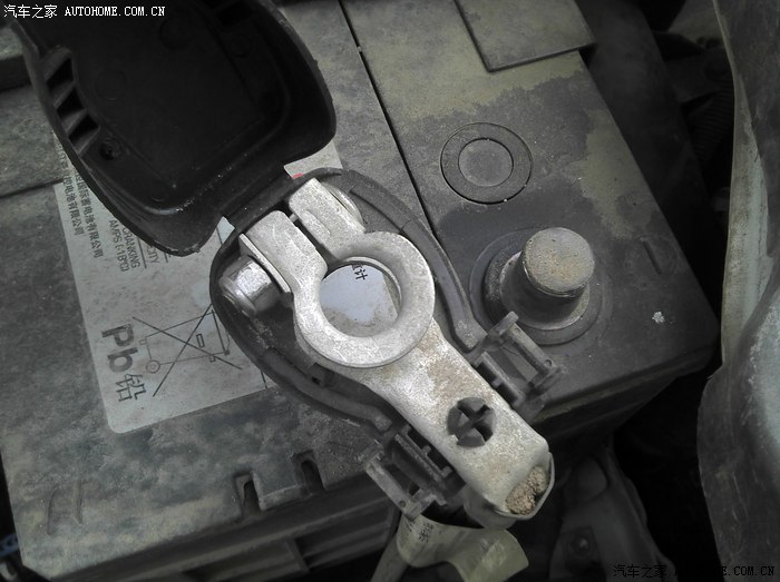 找到电瓶的负极处,打开盖子