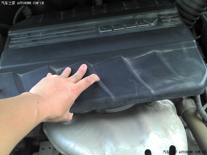 两手向上掰开发动机保护罩,要用点力,不要怕弄坏(里面有4个固定孔,好像是橡胶的不会坏的)