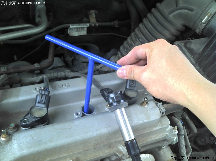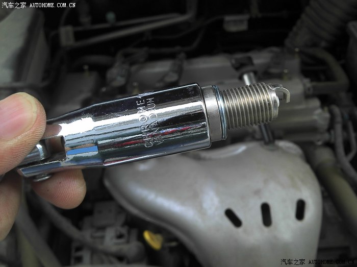这时更换一个新的火花塞,塞紧到套筒扳手里