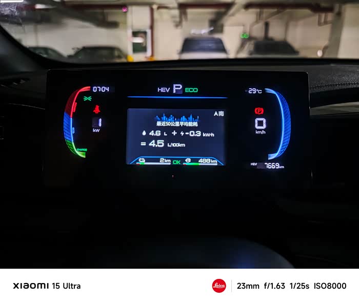 拿到车是22%的电,509的续航,昨晚开了60公里,目前电已用完,油量还有488公里,4.5的油耗