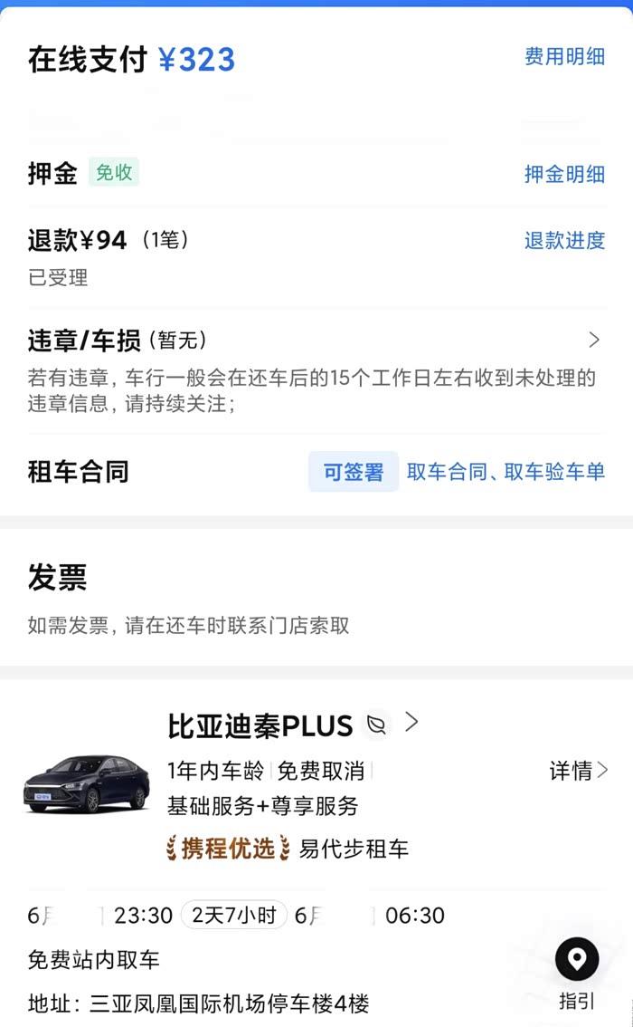 本来飞机延误,落地就23点了,退订理想以后已是深夜,看了租车平台,能拿到现车的只有比亚迪,不纠结