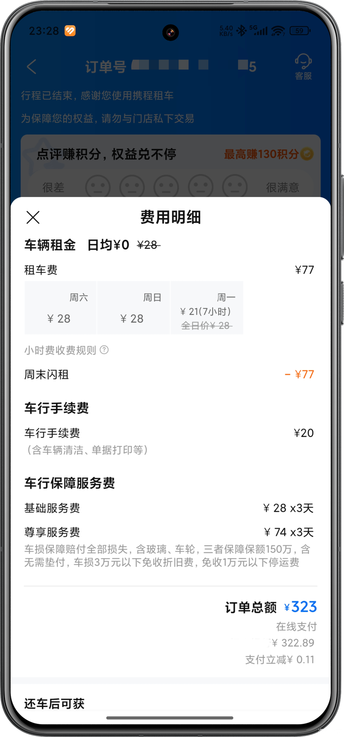 三天租车费用320,其实算下来好像全部都是保险的钱,各位觉得这个价格怎么样?