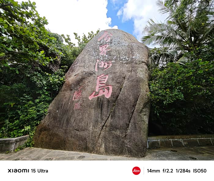 来到游览车的官帽山景点,分界洲岛石碑伫立于此