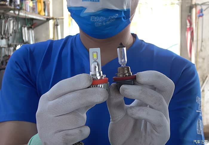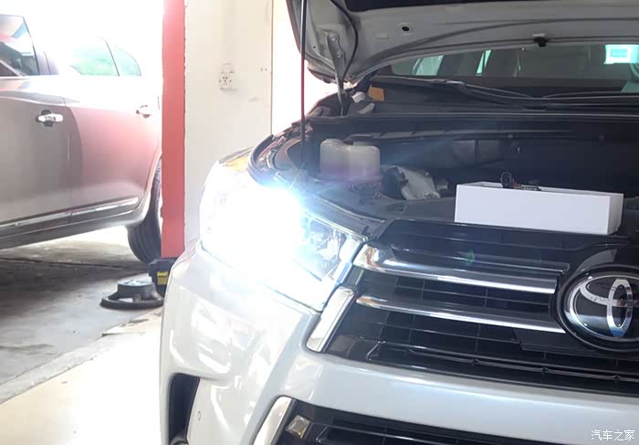 入了丰田汉兰达开了两年有余了,每次入夜开车都会有点担心受怕,原车卤素灯真的和蜡烛无异,暗。提车之后就一直想换来着,在不影响年审或保险的情况下,维修店老板建议我换led灯泡,要用新款汉兰达专用led灯泡,我线上线下都没有找到合适的,你说为啥要找专用?还不是19款汉兰达总成太奇葩,位置小,偏到一边去,普通的led灯装不了。网上买过几次,不是太大装不了,就是体积小或没风扇的,亮度和原车差不多,不如不改,挑着挑着,最后不了了之。直接换总成吧,两三年新车我又不想大改。近光有透镜,我就只想小动一下改个灯泡,不想改透镜。最后还是维修店老板帮我找的汉兰达专用led大灯,废话不说就让师傅给我上了,等了那么久啊!