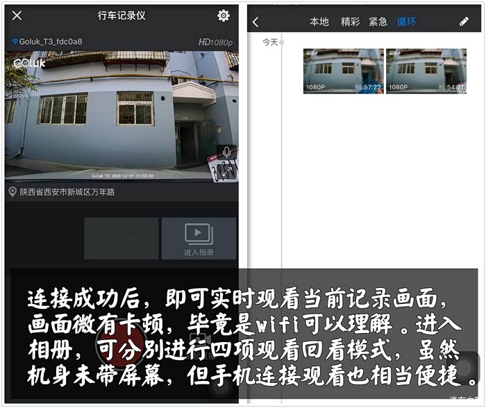 ③手机端连接极路客APP,每次上车均需手动连接Wifi一次,自动连接功能不是很便捷;手机端同步观看实时行车记录稍有卡顿;视频下载至手机端属纯流量输出,有些消受不起。