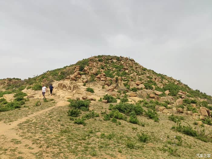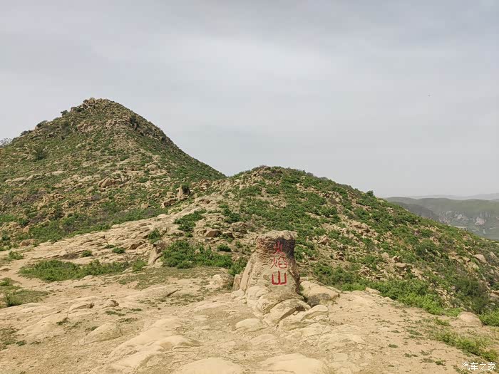 从天桥岭下来已经是下午一点,沿山间小路蜿蜒前行,在一农家饭店驻足,地锅里熬的玉米面糊糊炖面条、萝卜干炒肉、槐花馒头很是诱人,吃饱喝足继续前行,去附近的火焰山。山间羊肠小道窄、险且陡,崎岖不平,蜿蜒曲折,非汽车能入,小摩托可畅通无阻。沿山顶的非铺装路一路前行,绕过一座座山头,火焰山便呈现在眼前。火焰山密布光秃秃的大石头,呈褐色,被火烧过的样子,与周边青山绿植形成鲜明对比。