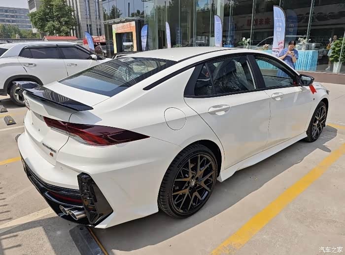 影豹R的车头扁平低趴,上下双层黑色进气格栅搭配橙色“R”标识,十分醒目,豹眼式LED大灯攻击性十足,车标下方贯穿的黑色装饰拉宽了视觉效果,前包围两侧的大通风口不仅好看,还能改善空气动力学性能,车尾顶部的原厂大型尾翼十分吸睛,下包围造型夸张,双边四出的排气管及撞色饰条,展现出强烈的性能街车风格,影豹R的外观真的非常出众,开在路上回头率超高。