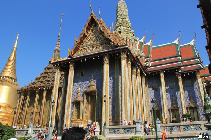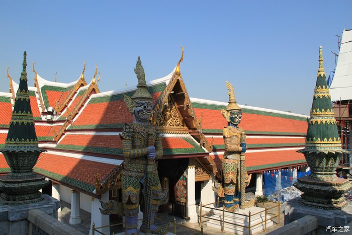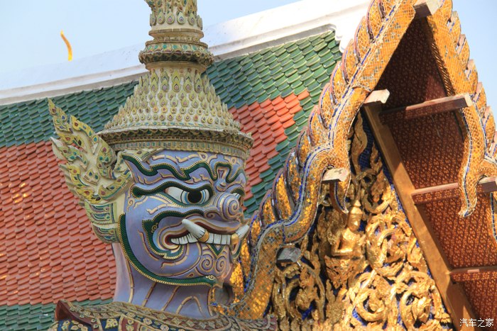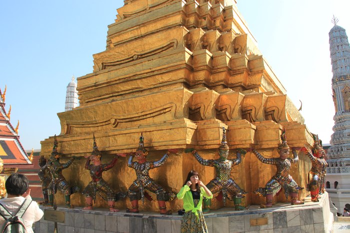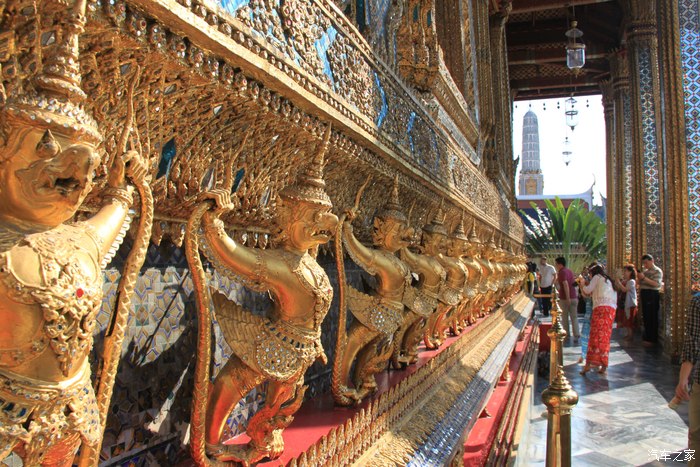 玉佛寺外壁的雕像,形态各异 大皇宫里最著名的要算玉佛寺,里面依据热季、雨季和凉季供奉着身着不同服装的玉佛,现在是凉季(即便如此都穿得是短袖),但里面禁止拍照的