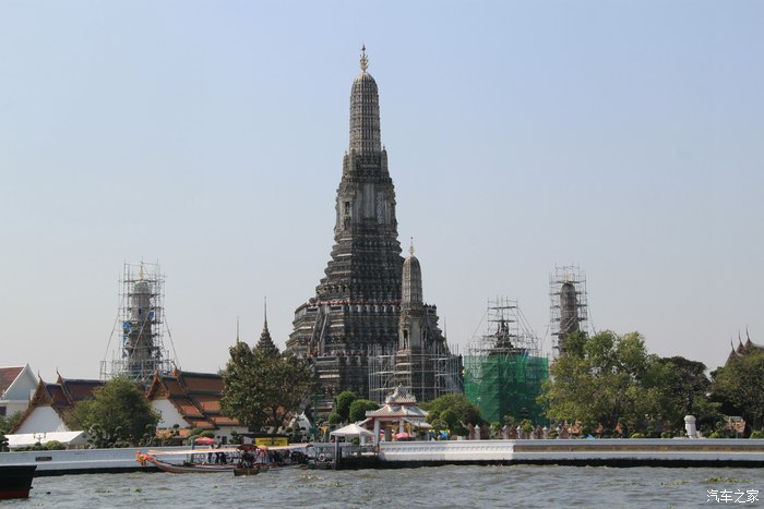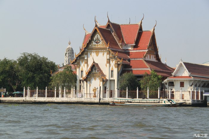 在湄南河上游览,最引人眼球的,要算是那些宏伟壮丽、金光闪闪的寺庙、佛塔。