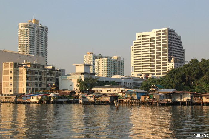 在船上拍下湄南河边的傍晚