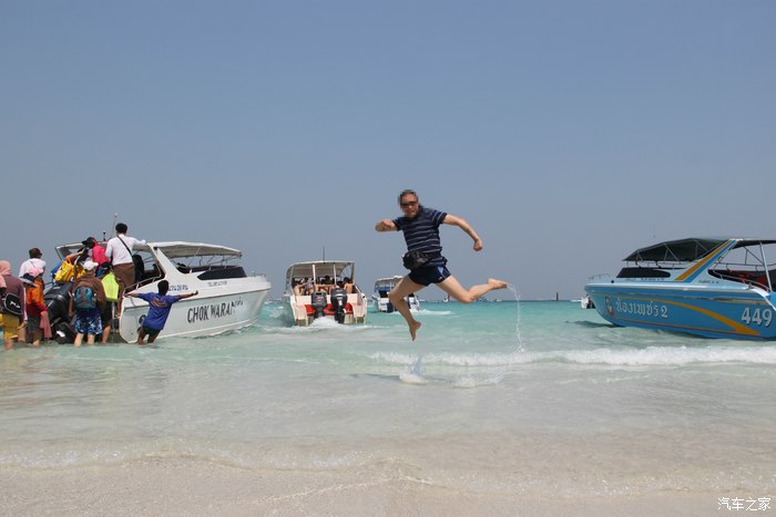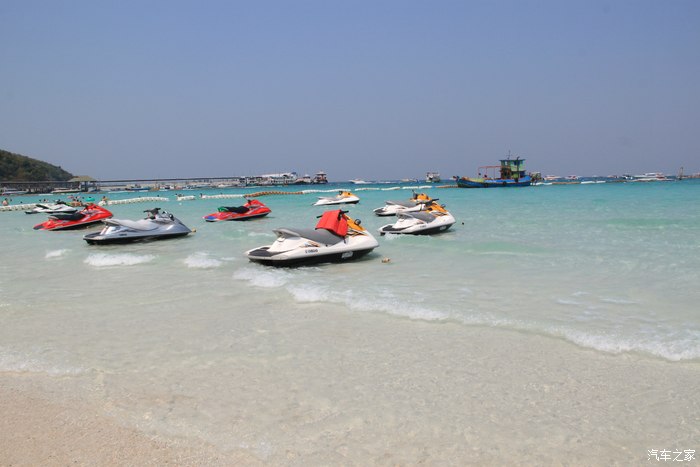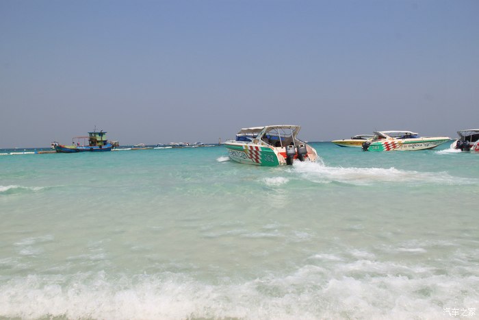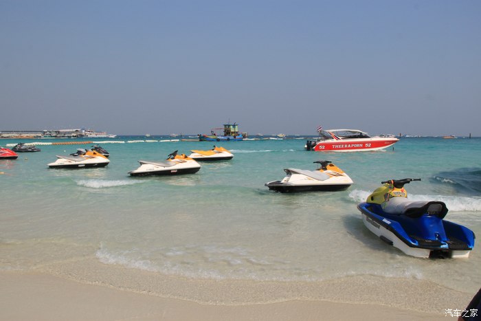 海滩边的快艇等着游人的参与,看看这海水,这沙滩,太纯净,太美了