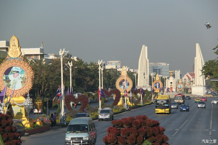 路上有很多泰国国王普密蓬·阿杜德的照片,泰国民众对国王是很尊重的,导游也强调让我们游客也要注意这点