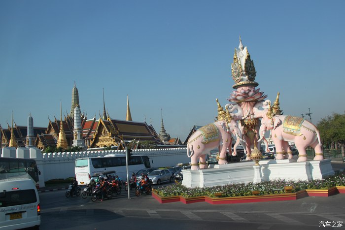 大象在泰国也是吉祥物,左边已看到大皇宫的部分屋顶