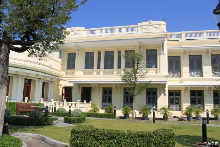 博物馆的背面,因为不能拍照,这里介绍下这个建筑: 阿兰达皇家博物馆顶端是绿色穹形的,汉白玉的罗马柱,馆内都是奇珍异宝,珠玉盈眼琳琅满目,很多大件都价值连城。特别给我留下的印象是精美绝纶的金玉镶雕和柚木等木雕。
