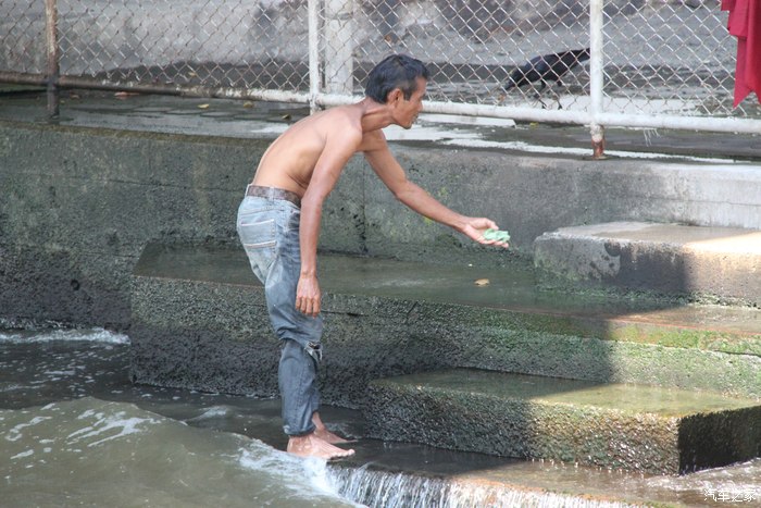 上岸时看到一人在河边洗澡