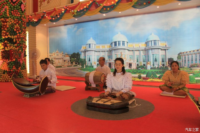 大厅的左侧,几个艺人有演奏泰国民间乐曲
