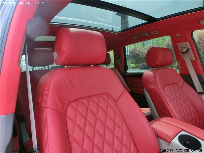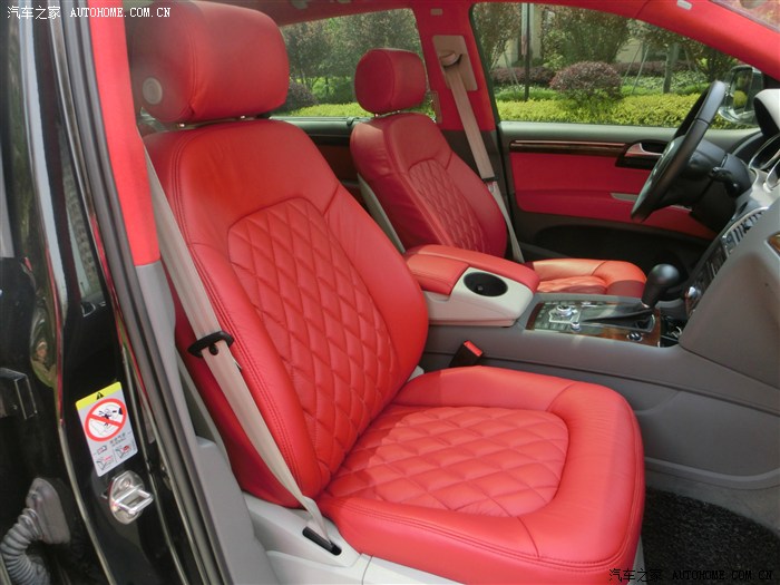 一直很喜欢Q7这个车型 但是觉得略老气 想改装 又不知从何下手 纠结已久,在朋友的建议下 和家人的支持下 终于下定了决心。原本是黑色的 所以先从外观下手 选择了电镀武钢黑 总体感觉 低调 奢华 有内涵一些 ,而内饰采用了 火辣辣的大红色 座椅用菱形想拼 显得运动一些 车顶内饰 ABC柱 都包成了 红色翻毛皮 除了感觉高档 大气 上档次 之外还取个好寓意 红运当头嘛 !经过15天的努力奋战 终于大功告成啦!小弟文采 和 拍照技术有限 请各位车友 多多见谅 凑活着看看,还是直接上图吧。。。