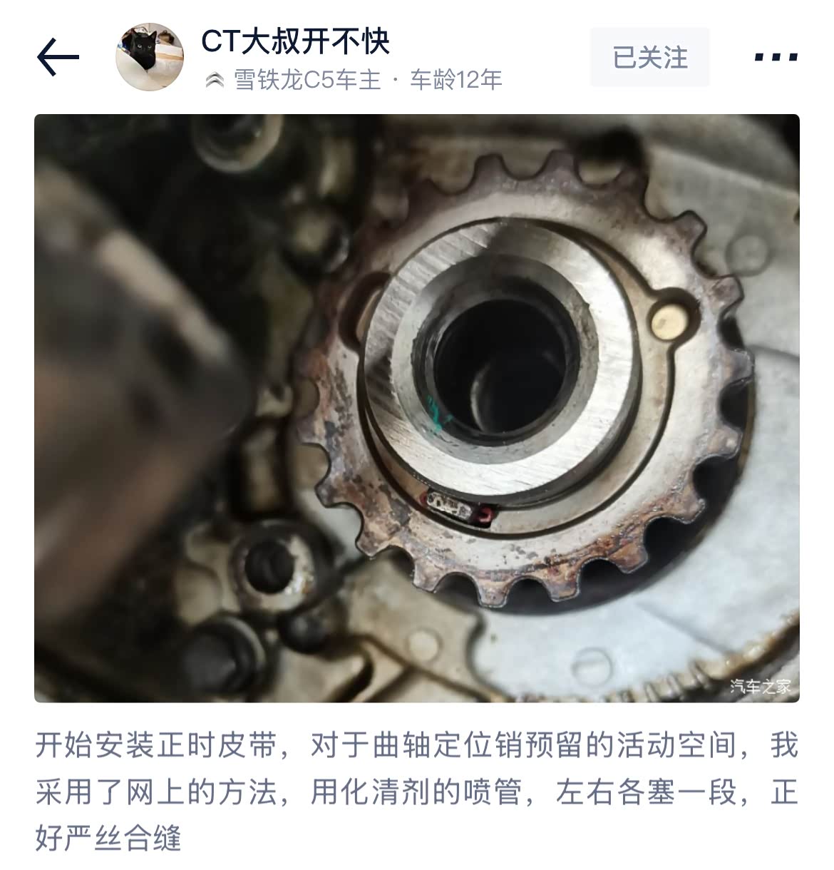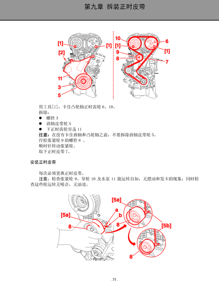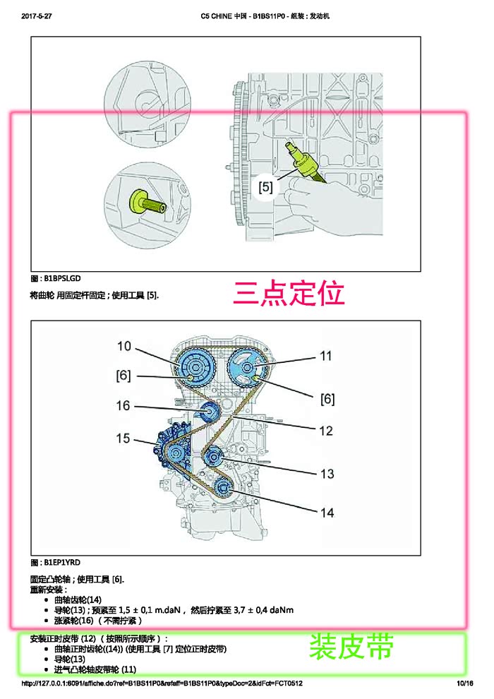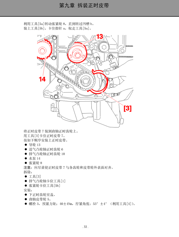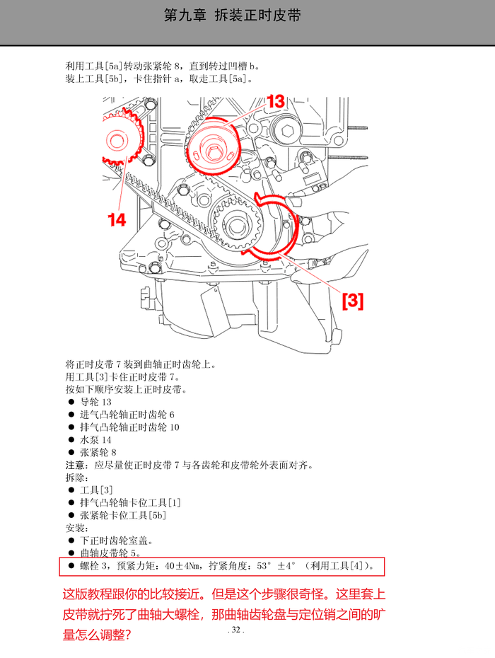 我认为应该在涨紧轮调整无误之后,才能去拧紧曲轴大螺栓。