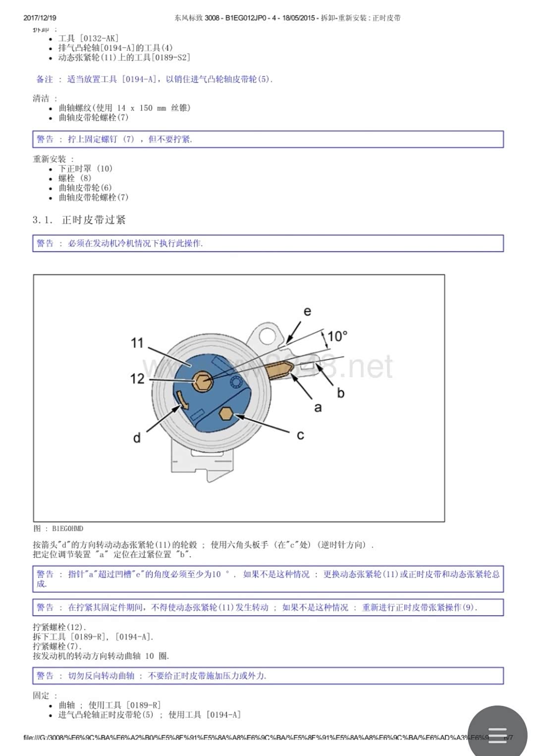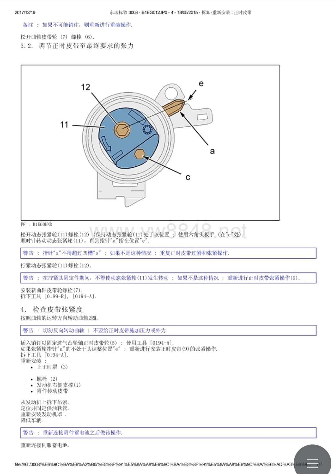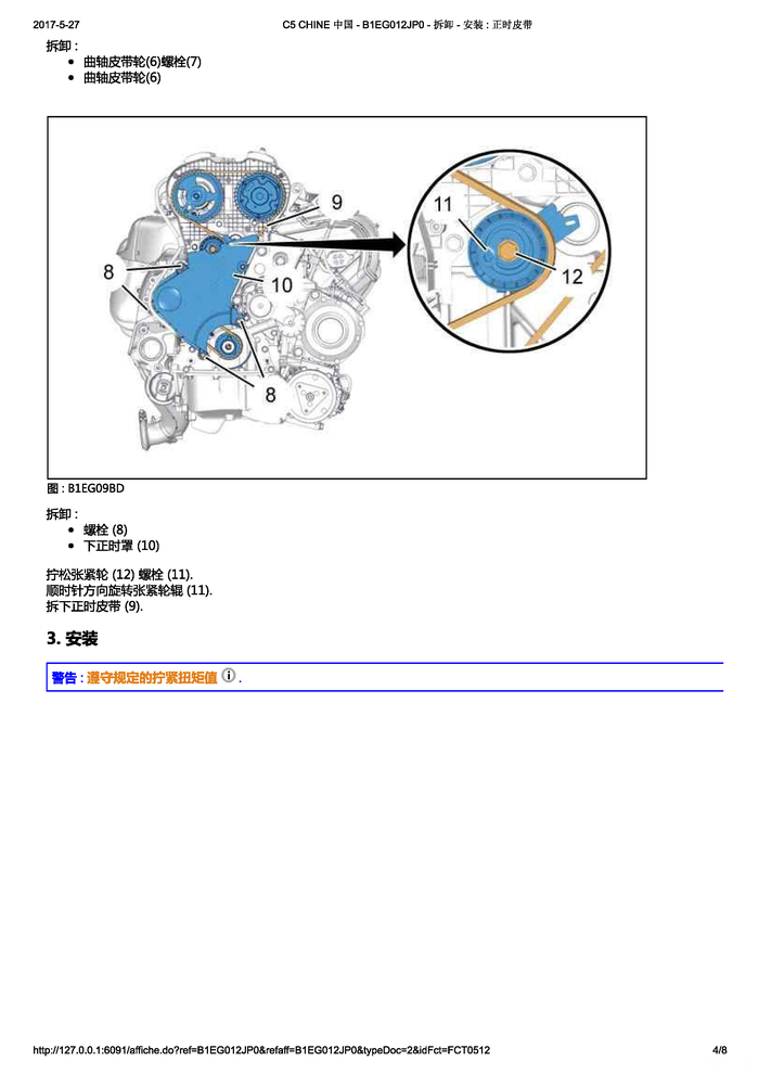 我认为应该在涨紧轮调整无误之后,才能去拧紧曲轴大螺栓。