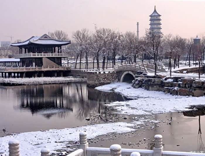 第一场雪带来了寒冷 公园里面冷 静静的 雪后的景色却是美丽的