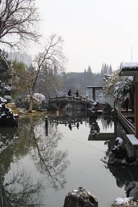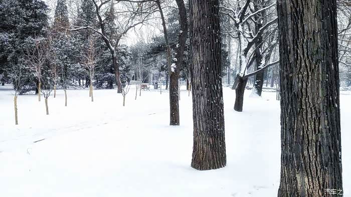 初雪让城市的公园 有一种冷静的美丽,静静的欣赏 慢慢的走着