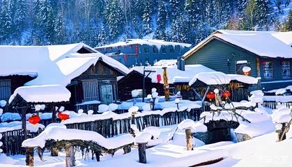 风景区的雪挡不住满山的绿色 ,你想不想和我一起看北方的第一场雪