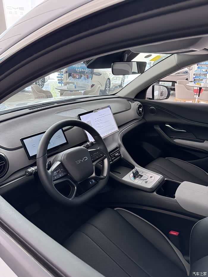内饰方面,塑料感确实强一些,座椅是织物的,但夏天不烫屁股,冬天不冰腰,其实更实用。中控屏尺寸小了一点(12.8英寸),但功能没缩水,反应速度也很快。
