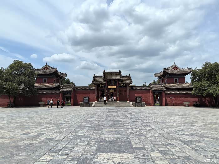 7月21日,中午到淮阳太昊陵。太昊陵位于河南省淮阳县,传说是“人祖”伏羲氏即太昊定都和长眠的地方。淮阳太昊陵陵墓位于淮阳县城以北的蔡河边。太昊陵包括太昊伏羲氏陵和为祭祀地而修建的陵庙,是我国著名的三陵——太昊陵,黄帝陵、大禹陵之一。原占地面积875亩,是一座气势磅薄、规模雄伟、殿图豪华的古代宫殿式建筑群。历来被称为“天下第一皇朝祖。太昊陵,即“三皇之首”太昊伏羲氏的陵庙,位于河南省、淮阳县羲皇故都风景名胜区,毗邻风景秀丽的万亩龙湖。国家AAAA级旅游景区,全国重点文物保护单位,中国十八大名陵之一,因太昊伏羲氏位居三皇之首,其陵墓被誉为天下第一陵。太昊伏羲陵占地875亩,规模宏大,肃穆庄严,始建于春秋,增制于盛唐,完善于明清,岁月3000年,历代帝王52次御祭,建国后党和国家领导人多次亲笔题词留念。淮阳太昊陵太昊陵庙以伏羲先天八卦数理兴建,是中国帝王陵庙大规模宫殿式古建筑群之孤例,分外城、内城、紫禁城三道皇城,有三殿、两楼、两廊、两坊、一台、一坛、一亭、一祠、一堂、一园、七观、十六门。景区内主要景点包括中轴线上的一系列建筑——午朝门、道仪门、先天门、太极门、统天殿、显仁殿、太始门、八卦坛、太昊伏羲陵墓、蓍草园等构成的主景区,以及附属景点:独秀园(原剪枝公园)、碑林、西四观、岳忠武祠、同根园、博物馆等几部分组成。人文始祖祭祀活动绵延千年历久不衰,每年的农历二月初二到三月初三,世界各地几百万人涌向淮阳县太昊陵庙朝圣伏羲,农历每月初一、十五,均有盛大祭祀活动,游客人数日达数十万。在08年以“单日参拜人数最多(约82.5万)的庙会”被上海大世界吉尼斯总部载入吉尼斯世界记录,太昊陵庙会成为中国规模最大最古老的民间庙会。太昊陵人祖祭典入选国家非物质文化遗。