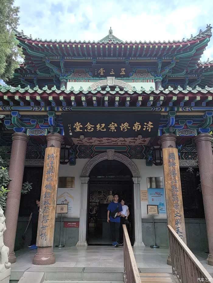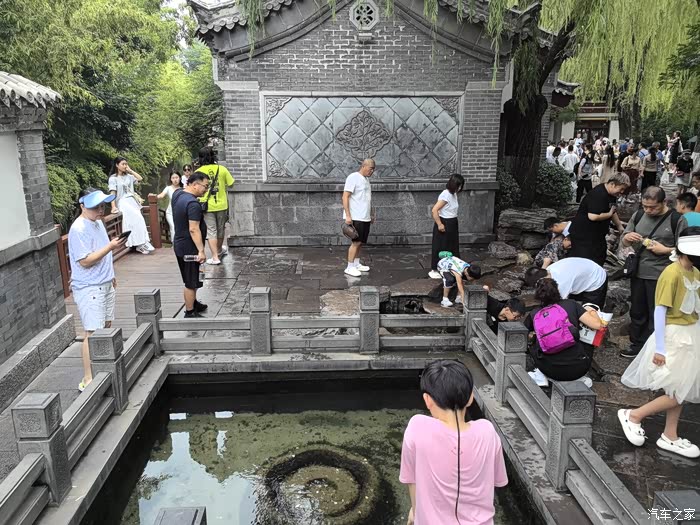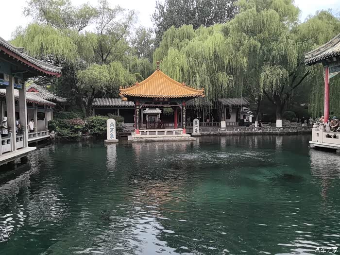 7月23日,早上游览趵突泉、五龙潭和大明湖。趵突泉公园位于济南市中心繁华地段,是国家AAAAA级旅游景区,南倚千佛山,北靠大明湖,东与泉城广场连接,是以泉水、人文景观为主的文化名园。1956年,趵突泉被整修辟为公园,历经几次扩建,逐渐建成以泉为主、小巧玲珑、步移景异的泉石园,面积从不足3.4公顷,扩至10.5公顷。趵突泉又名槛泉,为泺水之源,至今已有二千七百年的历史。趵突泉,三窟并发,声如隐雷,"泉源上奋,水涌若轮"。泉水一年四季恒定在摄氏18度左右。严冬,水面上水气袅袅,像一层薄薄的烟雾,一边是泉池幽深波光粼粼;一边是楼阁彩绘,雕梁画栋,构成了一幅奇妙的人间仙境。