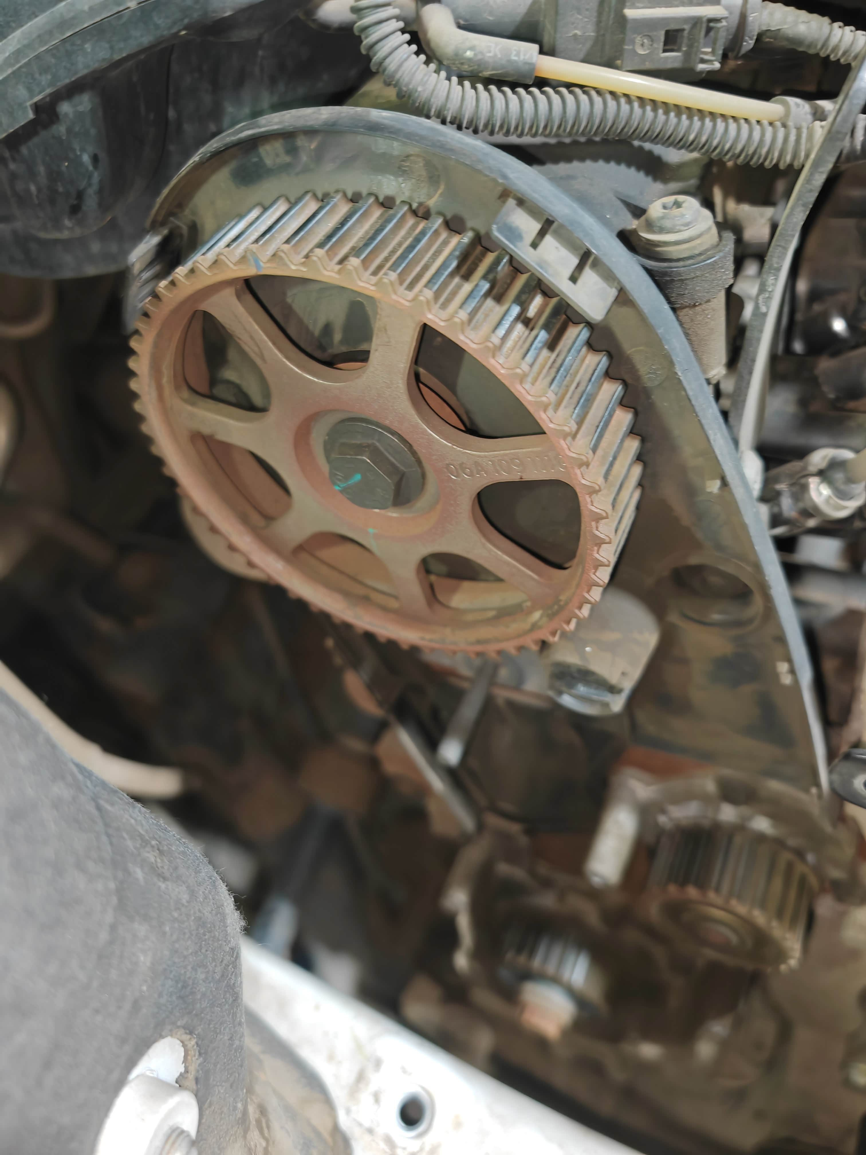 16万公里了约莫着正时皮带估计差不多,今天给换了,换的岱高的,一共750,皮带感觉还能开个两万公里,水泵也没事,不过为了放心换了吧。
