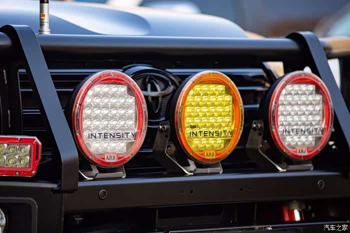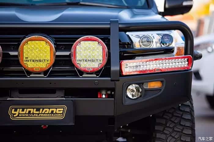为越野车加装辅助灯具,不求最亮,只求更亮。五盏ARB的射灯布满了整个杠体平台,足以在夜晚死寂的荒野,为你带来充足的安全感。