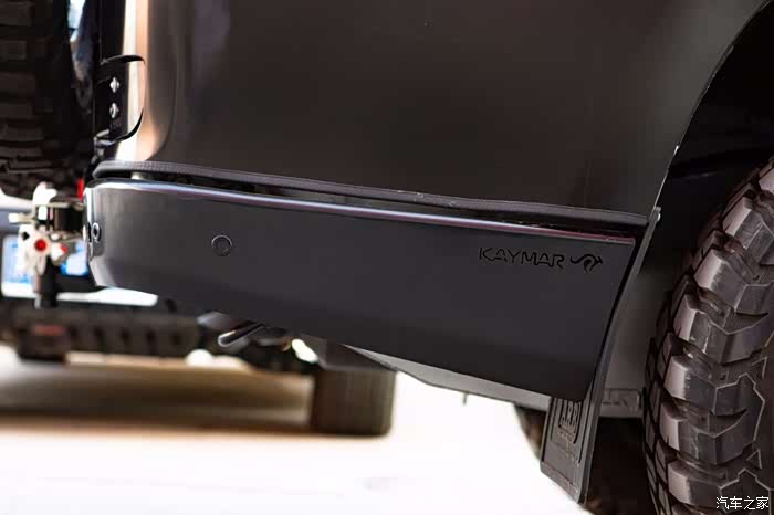 来到车尾,双备胎布局的Kaymar后杠从视觉上就透露着浓浓的“远征”范儿,毕竟在广袤的无人区,多一个备胎,就是多一份保障。
